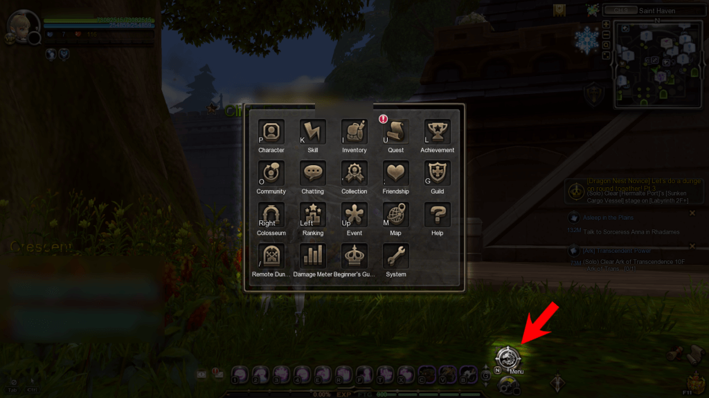 A lot of game features can be accessed through the Main Menu, by clicking on this icon or press N.