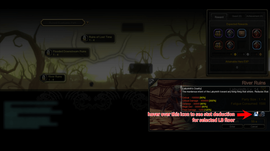 – Labyrinth (usually abbreviated to LB) is the extended difficulty system for dungeons/nests/raids in the game. Aside from enemies getting stronger on each LB level, players also suffer stat deduction from Any4 onward, which influences gearing quite a lot. You can see the details for these deductions from the stage selection screen.