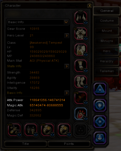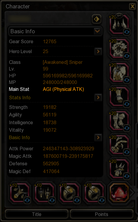 Named stats: STR, AGI, INT can be a class’ “main stat”. They are actually multipliers that influence PATK/MATK and CRT DMG; a class’s main stat has the highest multiplier on their damage compared to other stats, and this dictates how they select their gear.